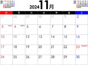 11月の店休日をお知らせ致します。