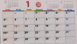 1月の店休日のお知らせ