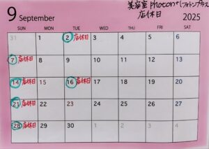 9月店休日のお知らせ