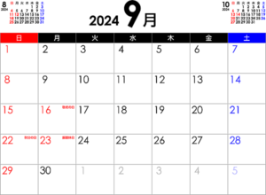 9月店休日のお知らせ