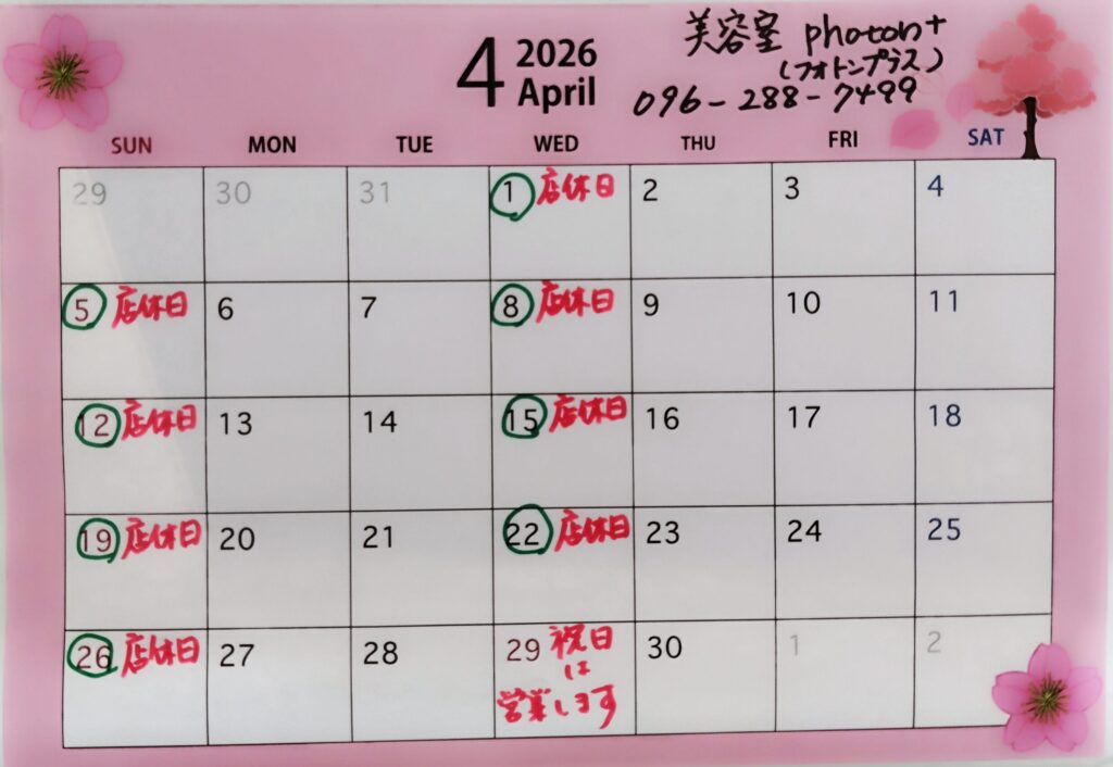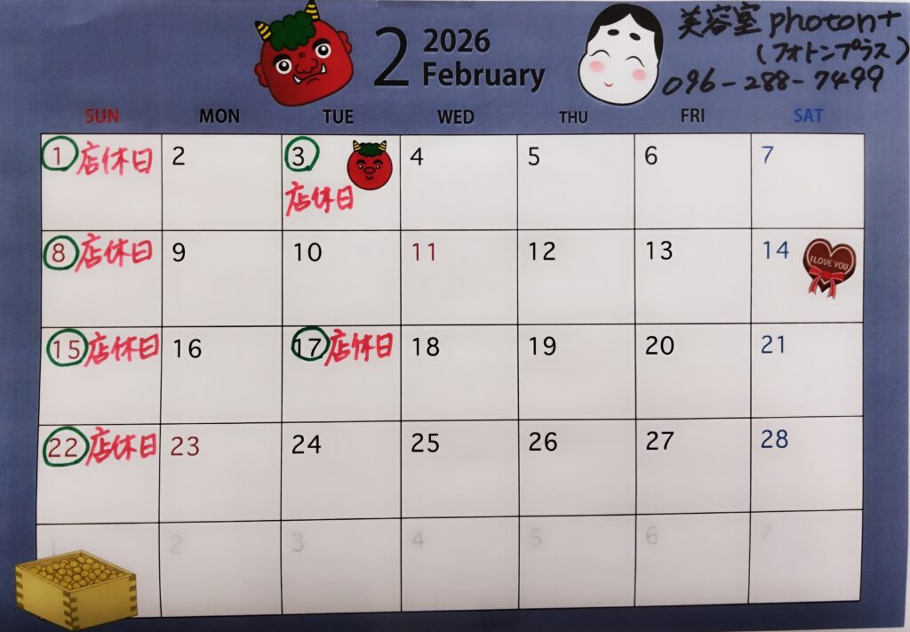 いつも美容室photon+をご愛顧いただきありがとうございます! 2月の店休日のお知... -